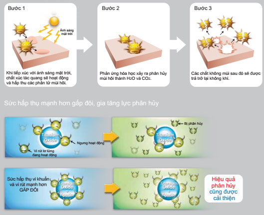 – Titan oxit sẽ hoạt động khi tiếp xúc với ánh sáng mặt trời.