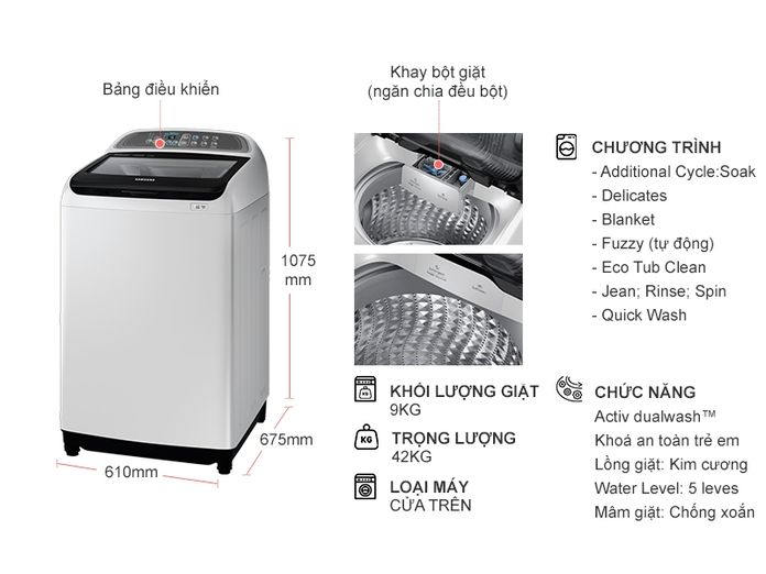| Kiểu lồng giặt: | Lồng đứng |