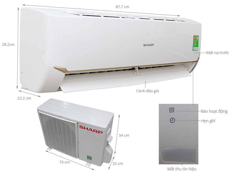 Máy lạnh Sharp AH-A12SEW 1.5HP có thiết kế sang trọng, tinh tế với tông màu trắng cùng lớp sơn phủ bóng hạn chế bụi bẩn và trầy xước.